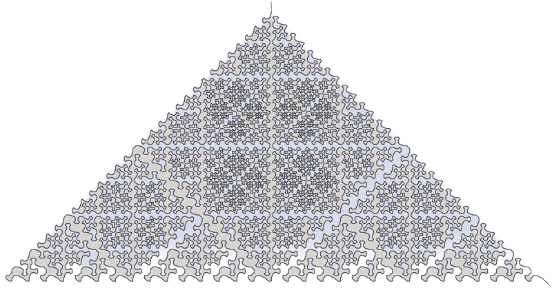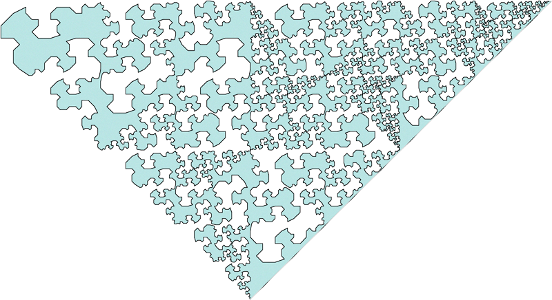 | Here is a self-avoiding dragon that I was excited to discover. It appears to be a relative of the Dragon of Eve. It's like adding a smaller triangular bump onto the big triangular bump of the Dragon of Eve. It's like a curly Dragon of Eve! |