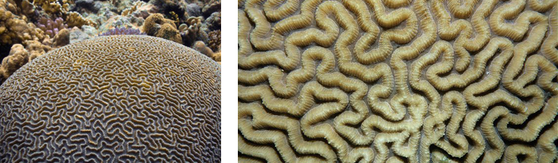 How could I not mention brain coral in a book called, "Brain-filling Curves"? Well, I will mention it now! This curious undersea creature - a coral of the family Faviidae - is covered with wonderful curly mazes. Hats off to this inspiring creature. |