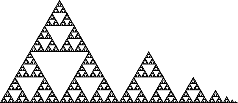 Here is a higher-level rendering of the Sierpinski family fractal curve, with some extra members of the family to the right of the pet turtle (I leave it to you to imagine who are the tiniest members of this family). |