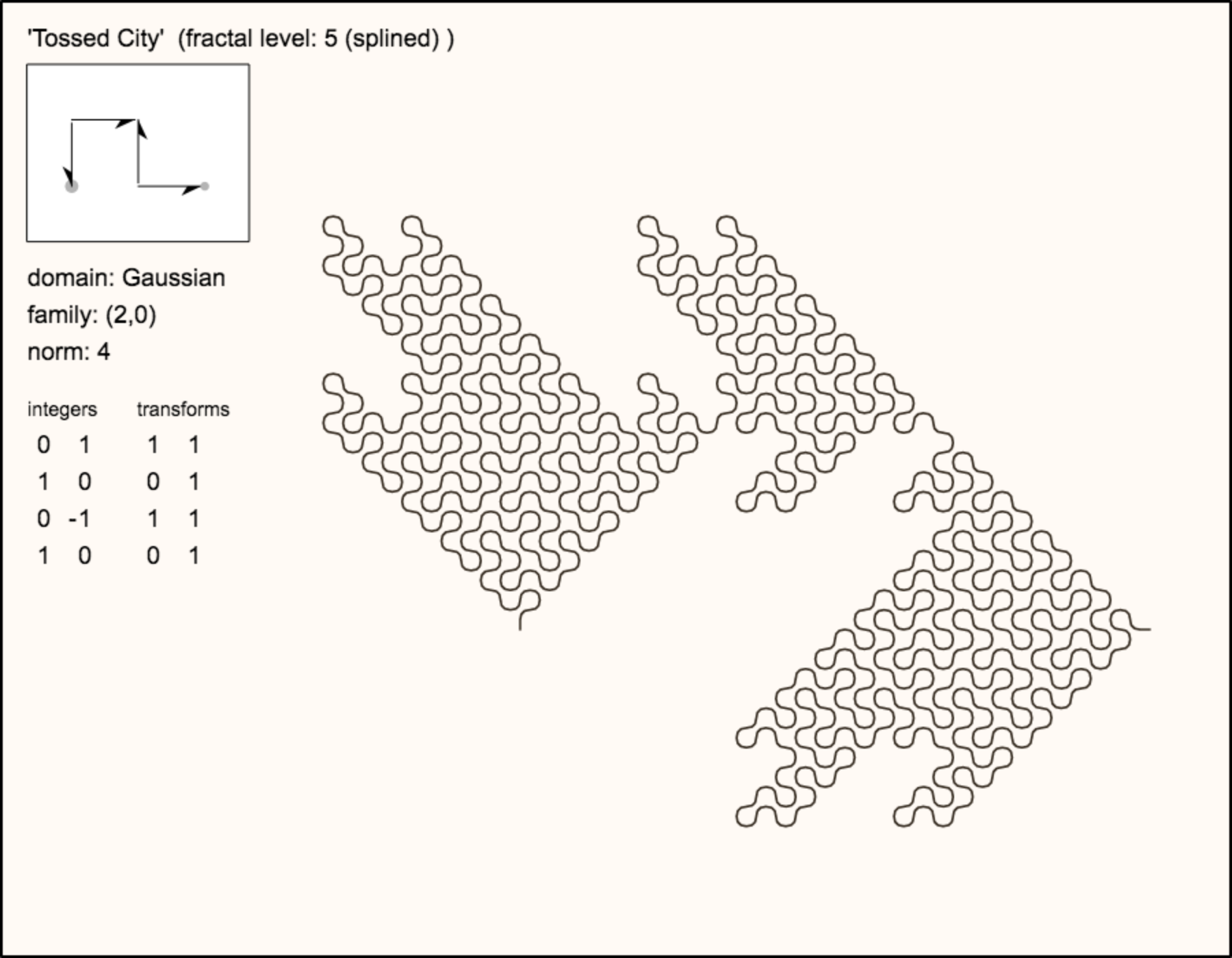 This family corresponds to a Gaussian integer with norm 4. Since it is a power of 2, some of its curves have similarities with the 2 family (the classic dragon curve and the Polya Sweep). Generators in this family can have integers with norm 2 as well as with norm 1.